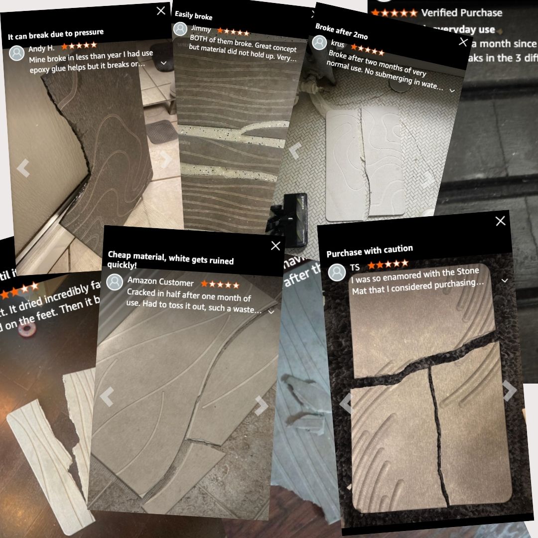 Stone bath mats are essentially compressed diatomaceous earth held together with glue. Over time, they warp, crack, and crumble, especially when used more than once a day.