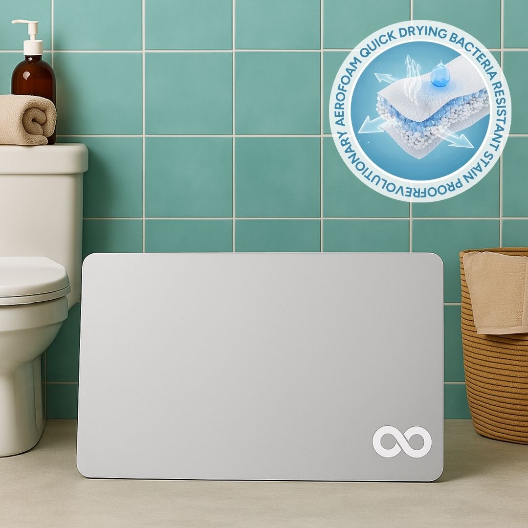 The EverClean bath mat changes everything with our patent pending, Aerofoam material that increases the surface area of absorbed water. By creating more contact points between water and air, moisture escapes five times more quickly than fabric.