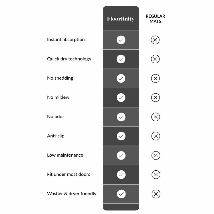 The Floorfinity Mat's open cell structural design enables it to dry instantly and prevents mildew and unwanted odor.