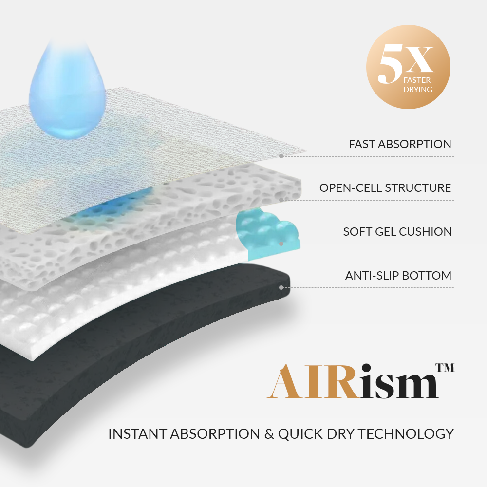 It is engineered with a multi-layered design that can instantly absorb moisture, dry up to 5X faster than regular mats, and require little maintenance.