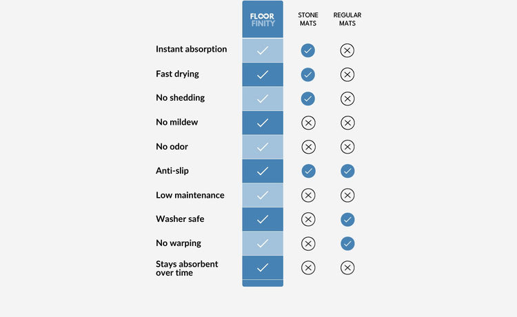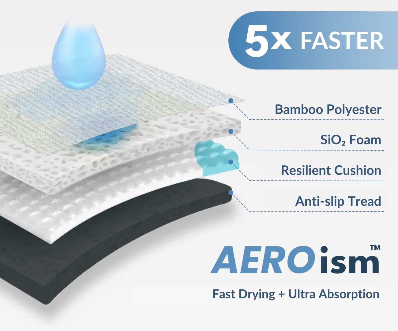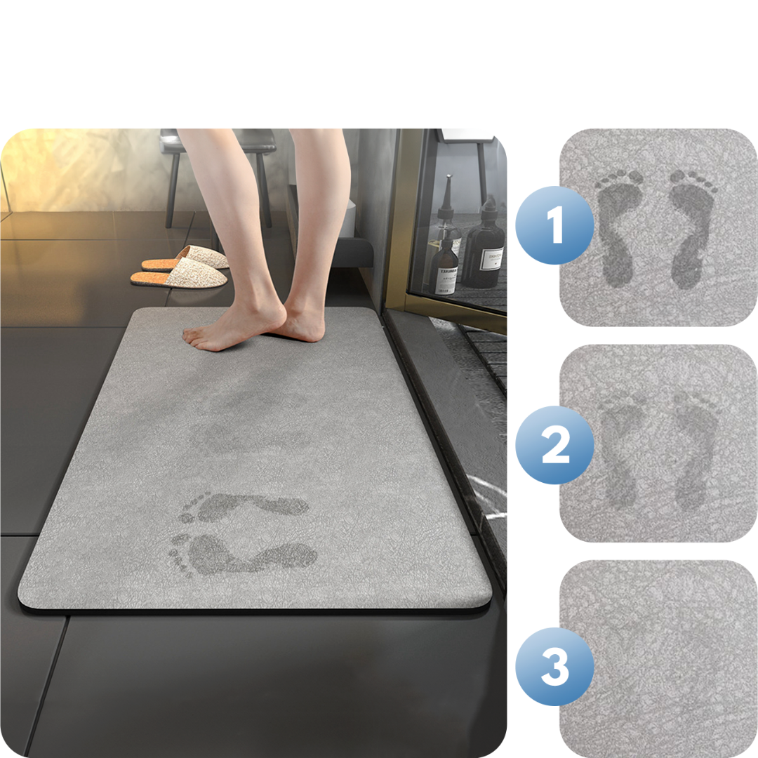 The secret is in the material. Silicon Dioxide (SiO₂) is a naturally occurring, siliceous material with a porous structure that quickly absorbs moisture. Its properties make it ideal for use in bath mats.