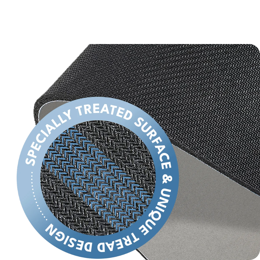 4️⃣ The bottom layer features a specially treated rubber surface with a unique tread design, ensuring that the mat always locks in place.